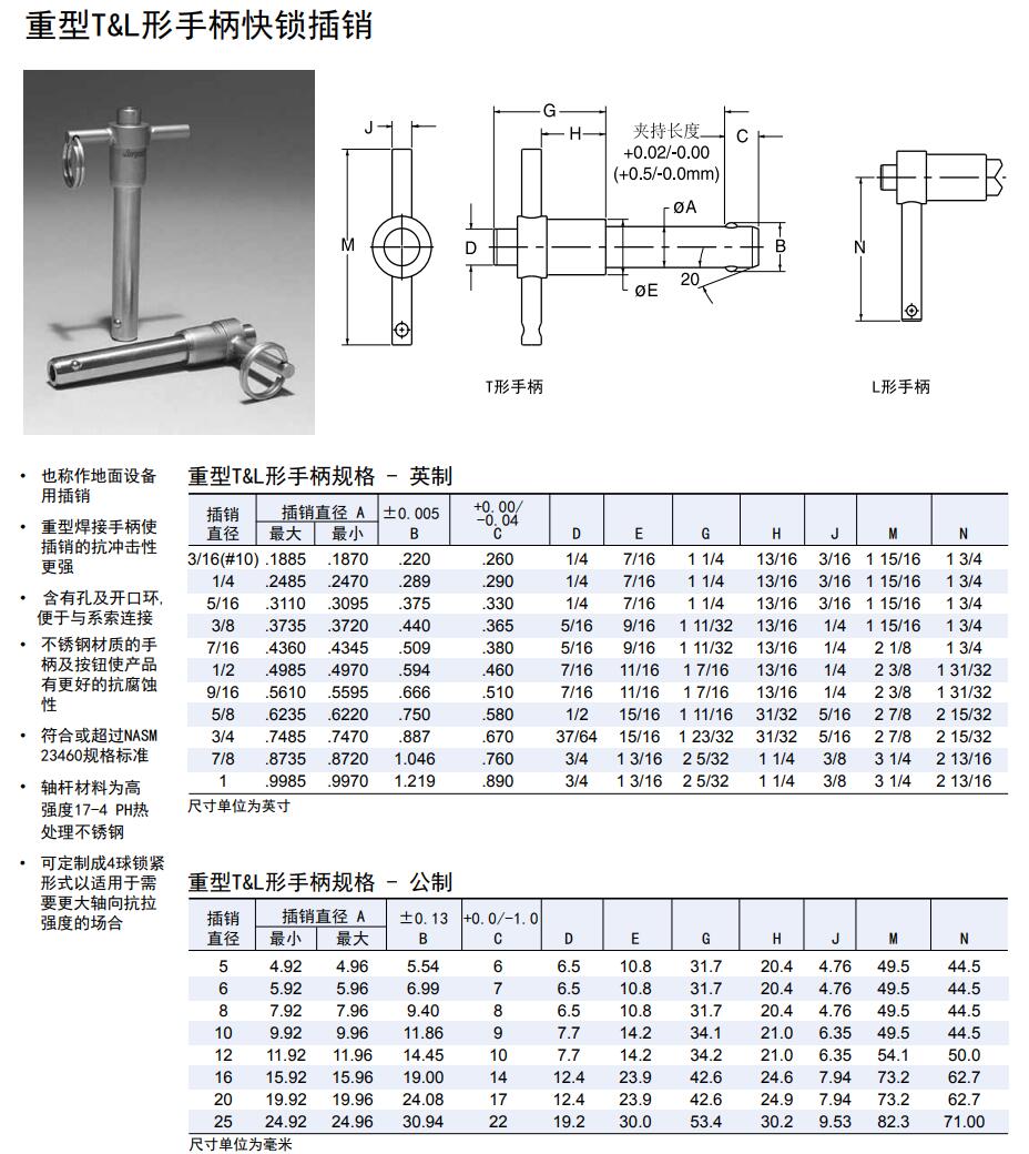 重型T&L形手柄快鎖插銷