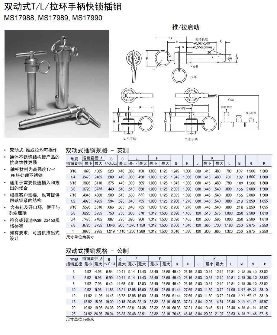 雙動(dòng)式T/L/拉環(huán)手柄快鎖插銷(xiāo)