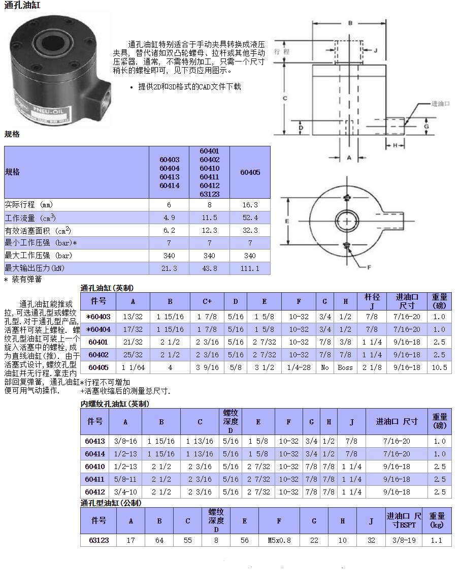 通孔油缸