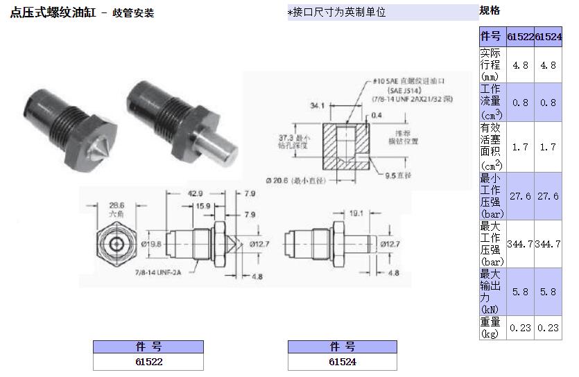 點(diǎn)壓式螺紋油缸 - 歧管安裝