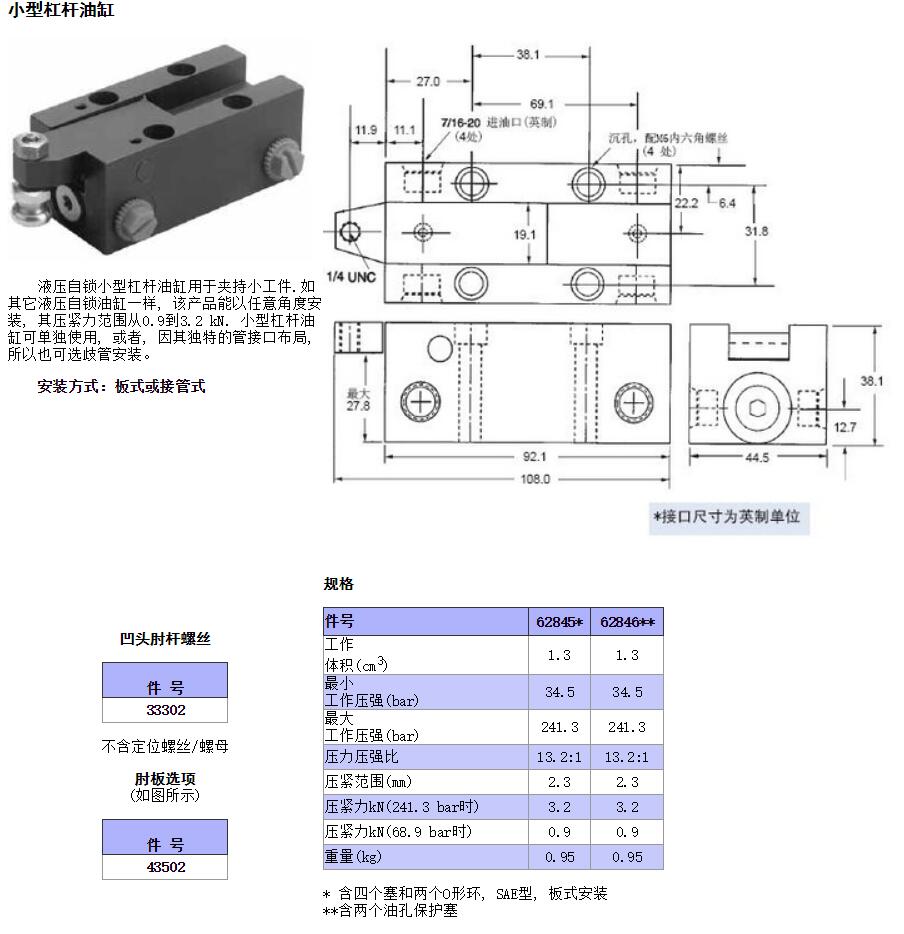 小型杠桿油缸