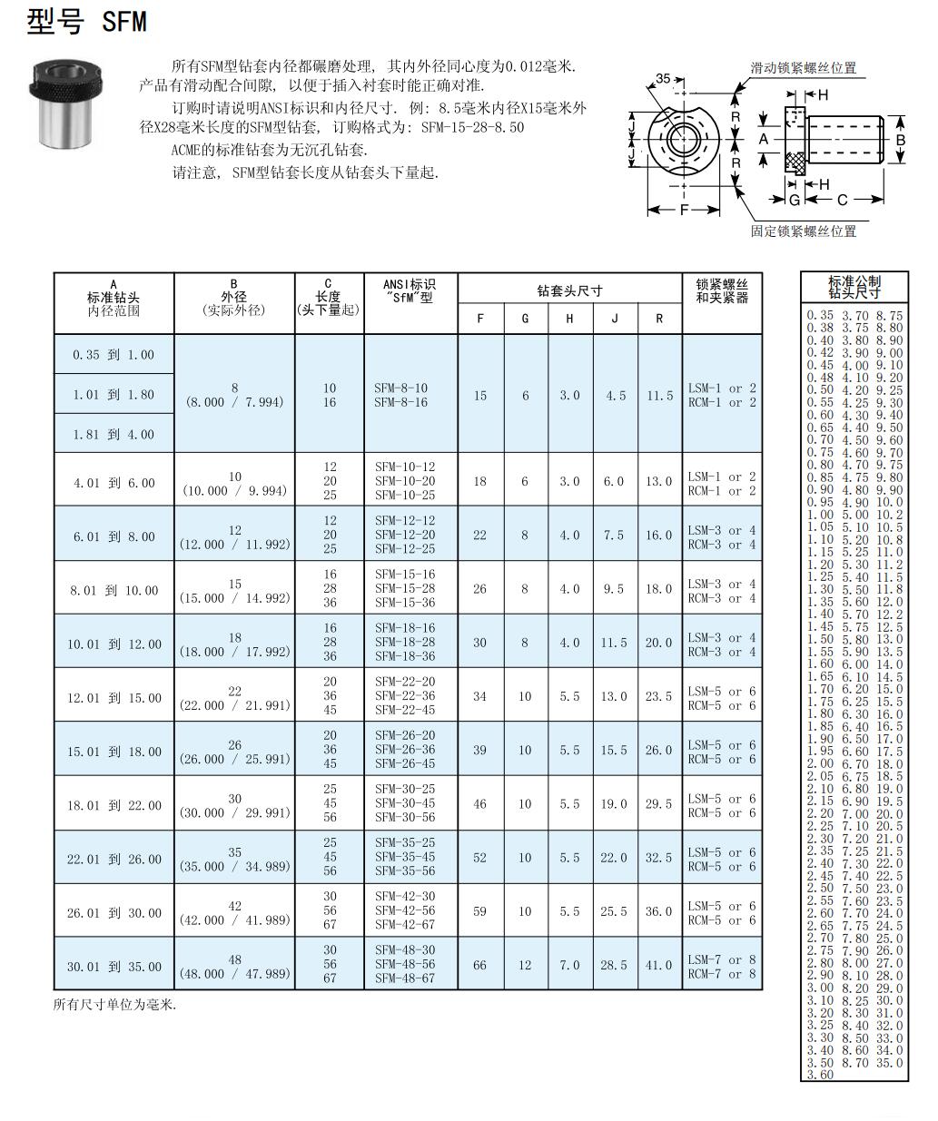 公制鉆套SFM
