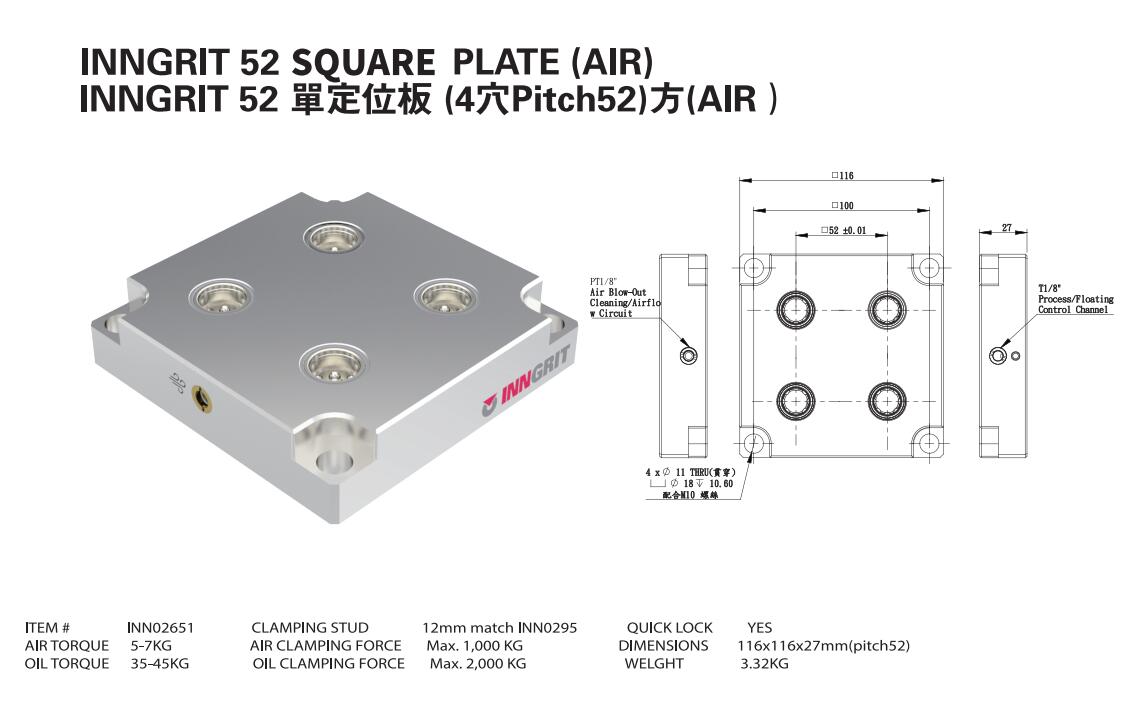 INN02651 單定位板 (4穴Pitch52)方(AIR)