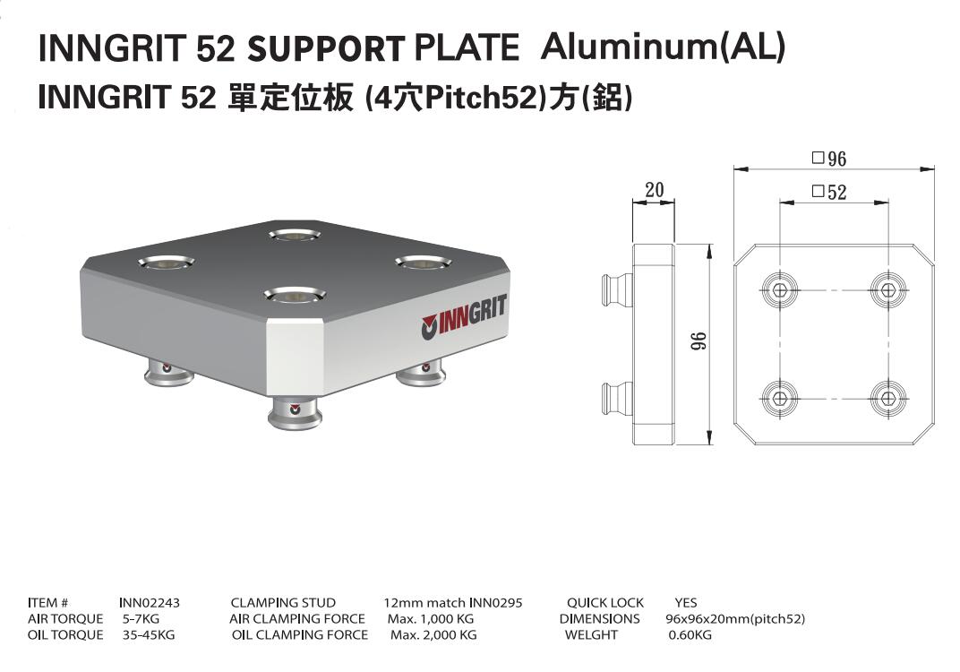 INN02243 單定位板 (4穴Pitch52)方(鋁)