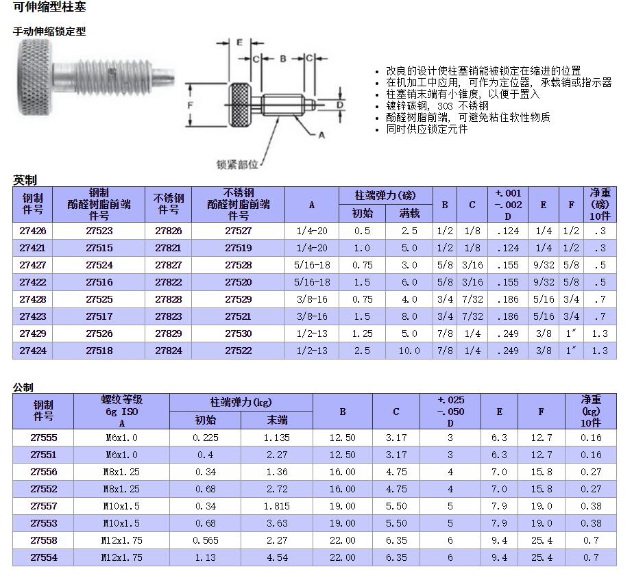 可伸縮型柱塞 手動(dòng)伸縮鎖定型