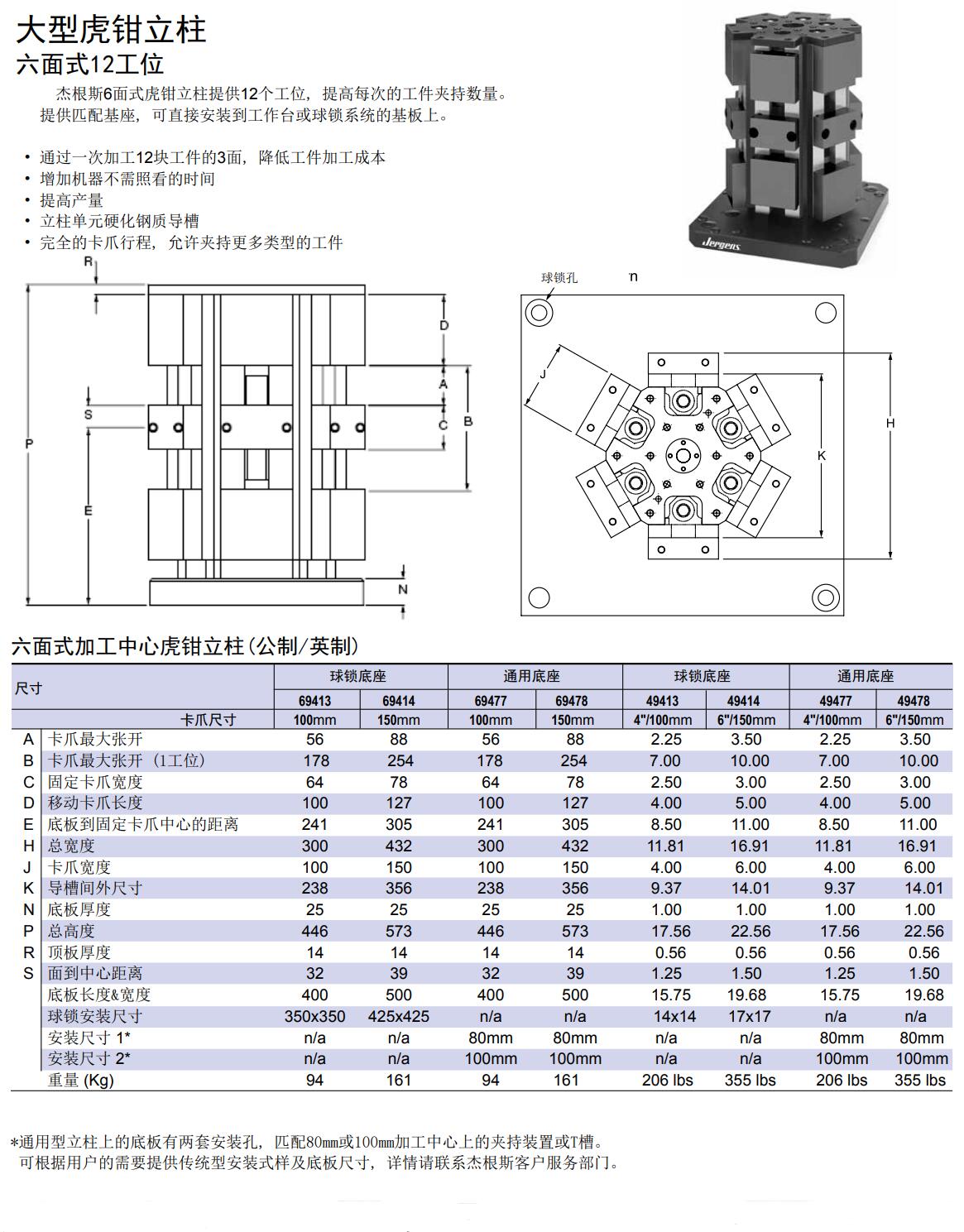 大型虎鉗立柱 6面式12工位